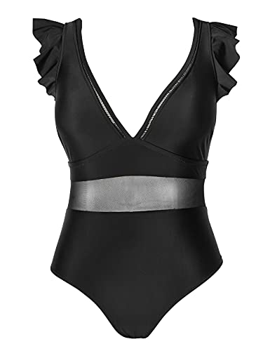 CUPSHE Badpak uit één stuk voor dames plus size V-hals ruches mesh badpak