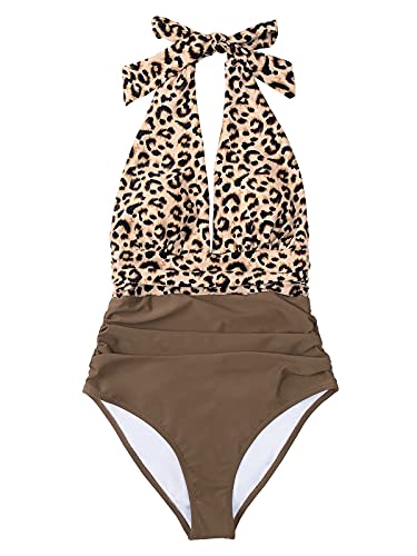 CUPSHE Eendelig badpak voor dames, badkleding met ruches en vetersluiting voor het strand, camouflerend buikgedeelte