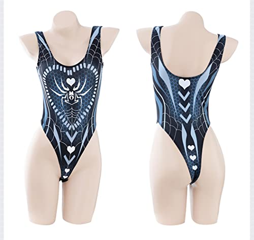 Eendelig badpak met hoge taille voor dames, superhelden, anime, lingerie, cosplaykostuum, feest, met hoge hals en strakke bodysuittop, grijs