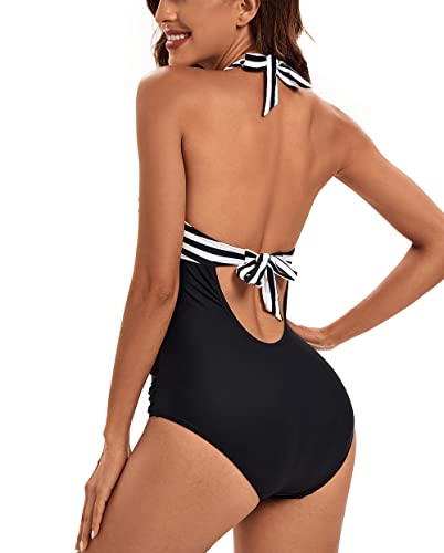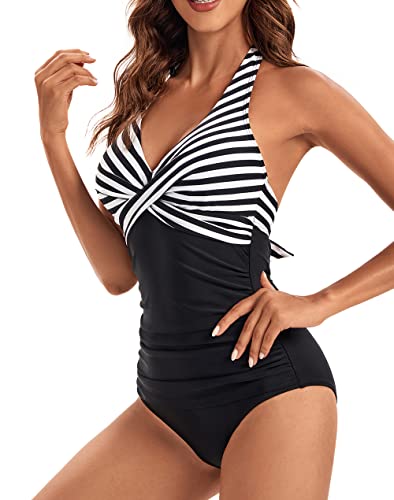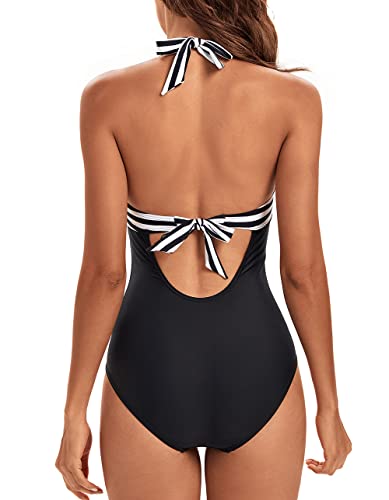 VILOREE Damesbadpak, eendelige badmode, badpak, halternek, V-hals, rugloos, push-up, figuurcorrectie, buikweg